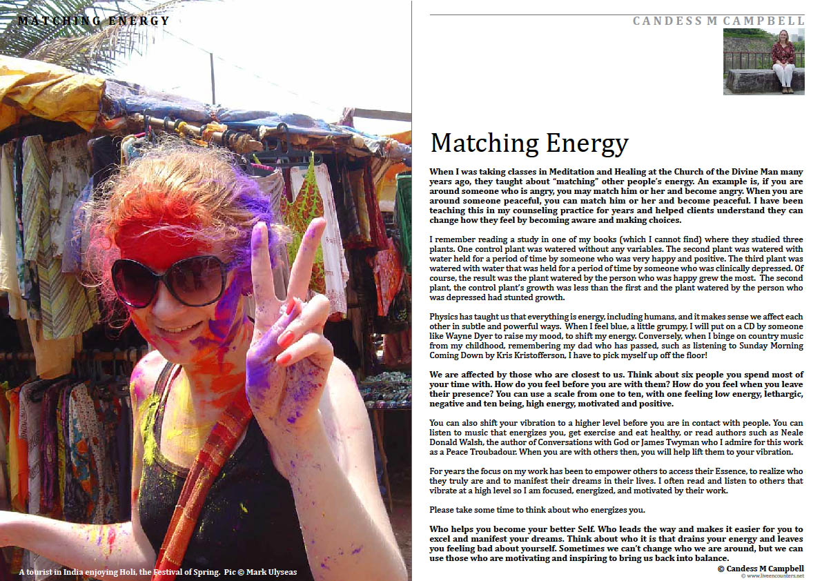 Candess M. Campbell, PhD is an internationally known Intuitive Life Coach, Licensed Mental Health Counselor, Seminar leader, Hypnotherapist and Author. She specializes in assisting others to gain their own personal power and to live a life of abundance, happiness and joy. Early 2012 she will be releasing her book 12 Weeks to Self-Healing: Transforming Pain through Energy Medicine. You can reach her at www.candesscampbell.com.