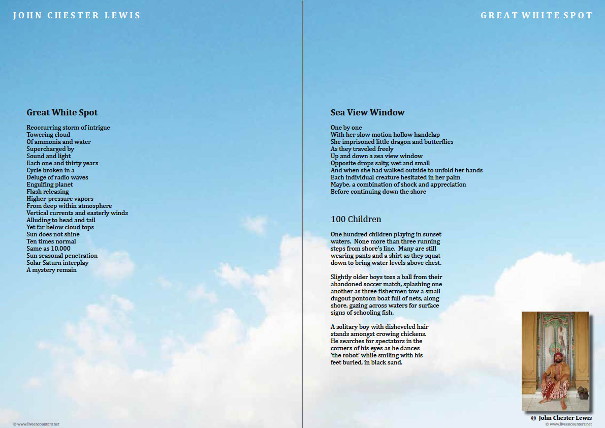 John Chester Lewis was born in Southern California and began writing poetry during university in Colorado. Presently he lives in Ubud, Bali, Indonesia where he works on his poetry, music, and painting, when not running JL Galleries fine art.Three more books of poetry are due to be released in 2010.