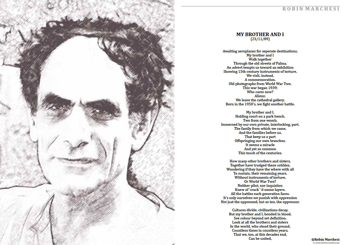 Robin Marchesi was born in Hampshire England. He was educated at Oxford and London Universities. He has lived ‘on his wits’ throughout the world and has several published works including Kyoto Garden, A B C Quest and A Small Journal of Heroin Addiction. His latest book “Poet of the Building Site” about his time with the Sculptor Barry Flanagan (1941 – 2009) is published by Charta Press in association with the Irish Museum of Modern Art. At the moment he is living in London completing his latest work entitled: “Prospero’s Cell.”