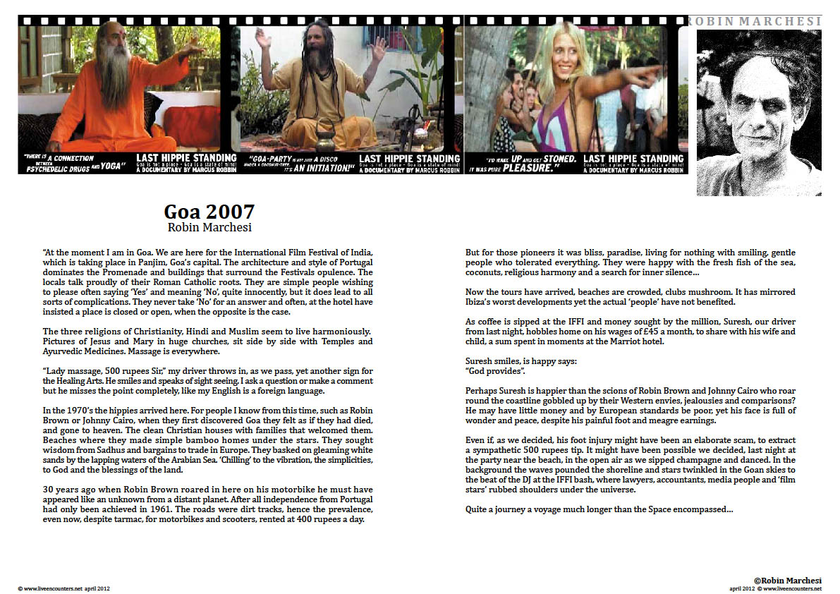 Robin Marchesi was born in Hampshire England. He was educated at Oxford and London Universities. He has lived ‘on his wits’ throughout the world and has several published works including Kyoto Garden, A B C Quest and A Small Journal of Heroin Addiction. His latest book “Poet of the Building Site” about his time with the Sculptor Barry Flanagan (1941 – 2009) is published by Charta Press in association with the Irish Museum of Modern Art. At the moment he is living in London completing his latest work entitled: “Prospero’s Cell.”