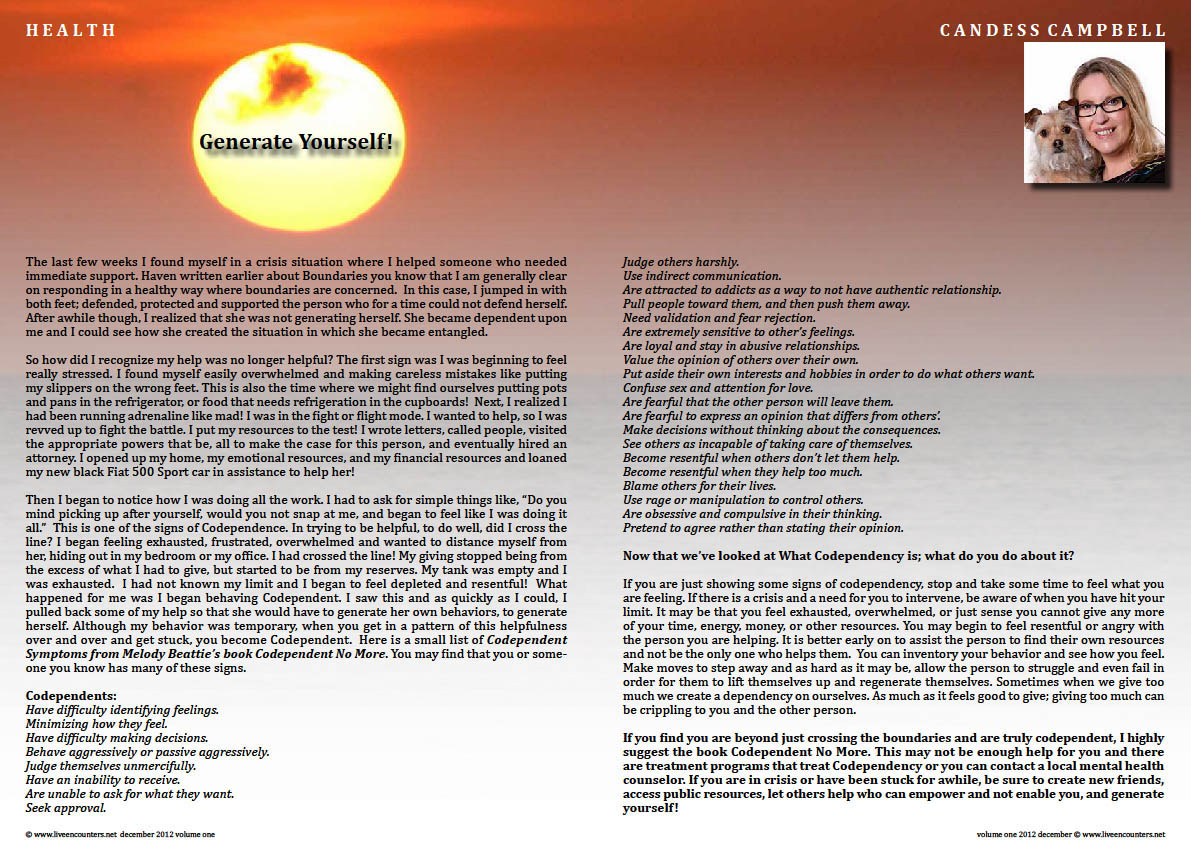 Candess M Campbell – Generate Yourself! DECEMBER Volume One 2012 Download PDF Here © Candess M Campbell