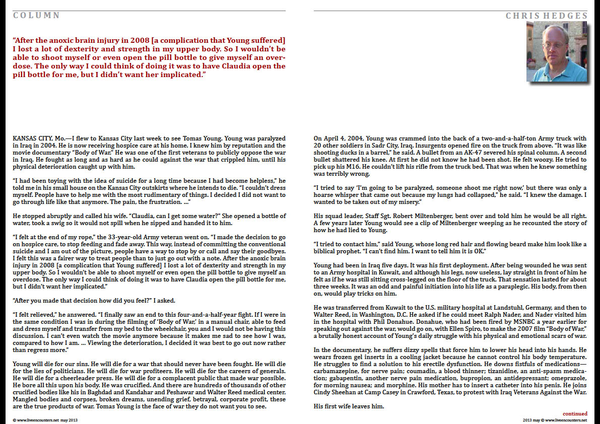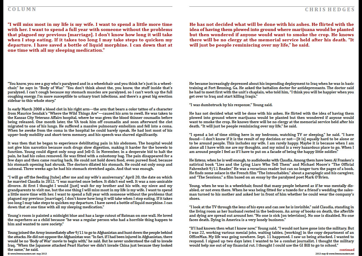 Chris Hedges was a foreign correspondent for the New York Times and was awarded the Pulitzer Prize for Explanatory Reporting, and his War Is a Force That Gives Us Meaning was a finalist for the National Book Critics Circle Award in Nonfiction. Hedges is a senior fellow at the Nation Institute, a columnist for Truthdig, and the Anschutz Distinguished Fellow at Princeton University. He lives in Princeton, New Jersey. www.truthdig.com