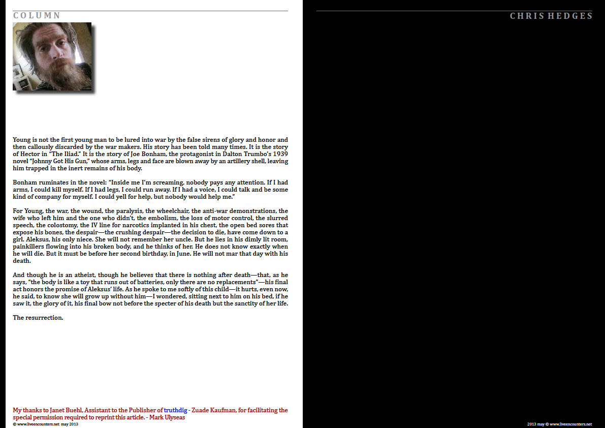 My thanks to Janet Buehl, Assistant to the Publisher of Truthdig– Zuade Kaufman, for facilitating the special permission required to reprint this article. – Mark Ulyseas