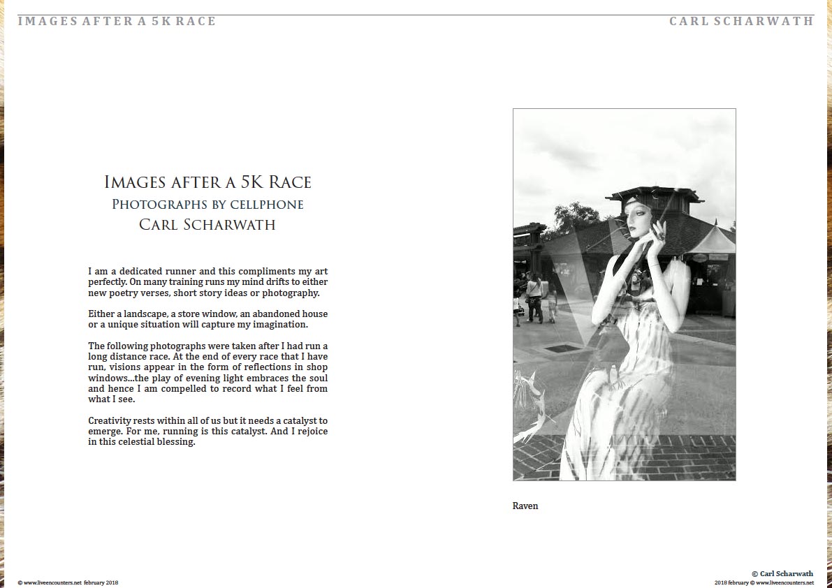 Carl Scharwath, has appeared globally with 100+ magazines selecting his poetry, short stories, essays and art photography. Two poetry books: Journey To Become Forgotten (Kind of a Hurricane Press) and Abandoned (ScarsTv) have been published. Carl is the art editor for Minute Magazine, a dedicated runner and 2nd degree black-belt in Taekwondo.
