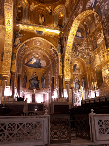When the Norman, Roger I, began his rule in Palermo in 1072 AD it was already a vibrant centre of commercial and cultural activity. At the time of the Muslim conquest in 827 AD Sicily was part of the Byzantine Empire, with Greek being the main language. Nevertheless, many languages, including Arabic were spoken by the great mixture of cultures at home on the island. Inscriptions in Greek, Latin and Arabic illustrate the open-minded attitude of the Normans once they began their Christian rule in Palermo. Their approach was to assimilate and work together with other cultural influences.