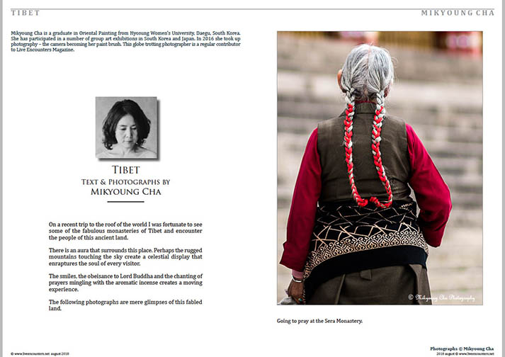Mikyoung Cha is a graduate in Oriental Painting from Hyosung Women’s University, Daegu, South Korea. She has participated in a number of group art exhibitions in South Korea and Japan. In 2016 she took up photography – the camera becoming her paint brush. This globe trotting photographer is a regular contributor to Live Encounters Magazine.