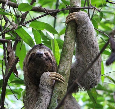 After another rest, the sloth unfurled his gangly limbs, turned his sweet face to the sky, and resumed his ascent. The nearer he came to the top of the tree, the further apart the branches spread. He waved his front limbs through the air, but found no branch within reach. So he tucked his chin into his chest and appeared to go to sleep. Had he given up, or was he deep in thought?