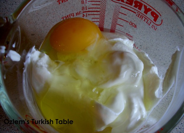 Beat the egg and the strained yogurt in a saucepan,