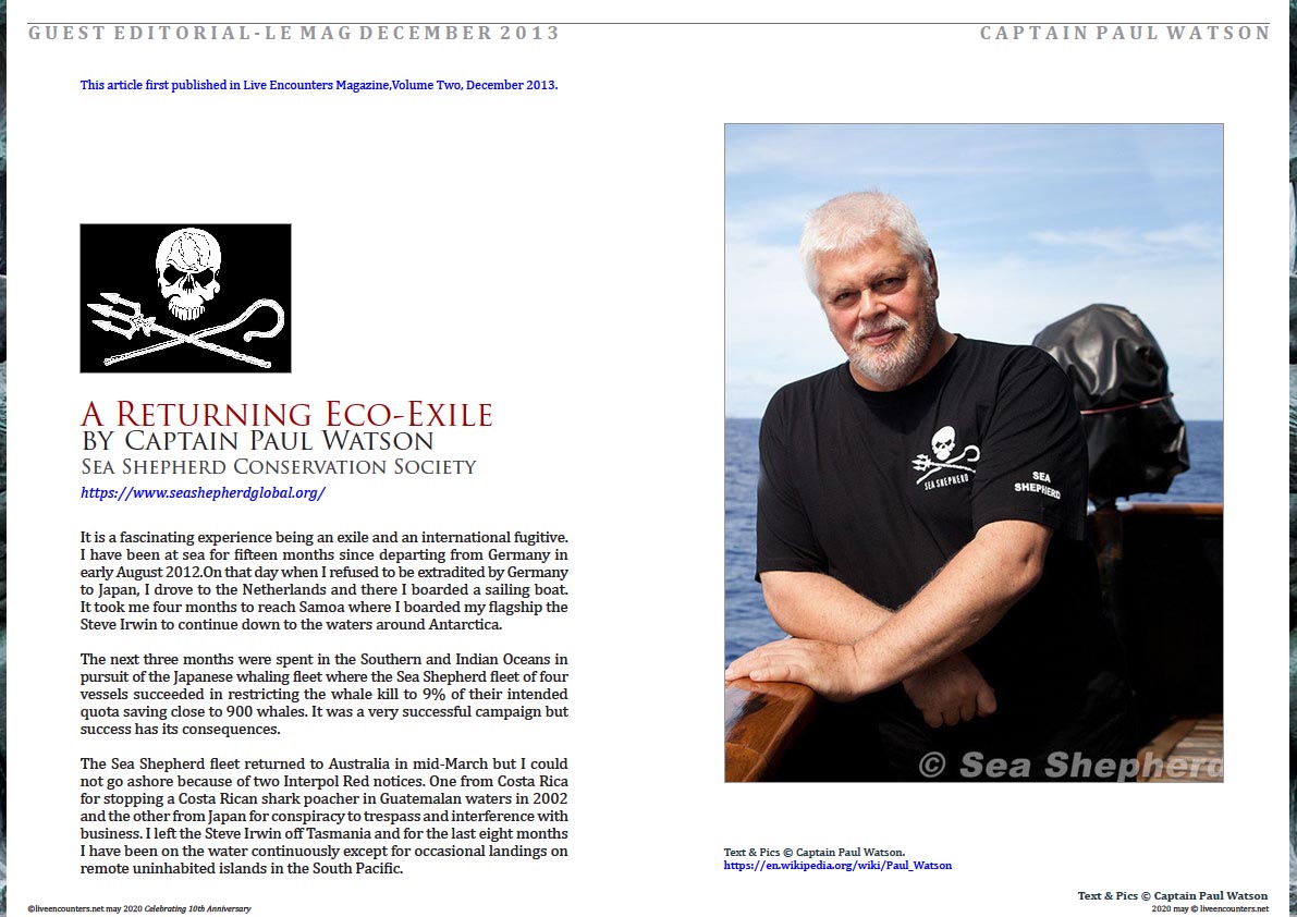 A Returning Eco-Exile, Guest Editorial by Captain Paul Watson,
