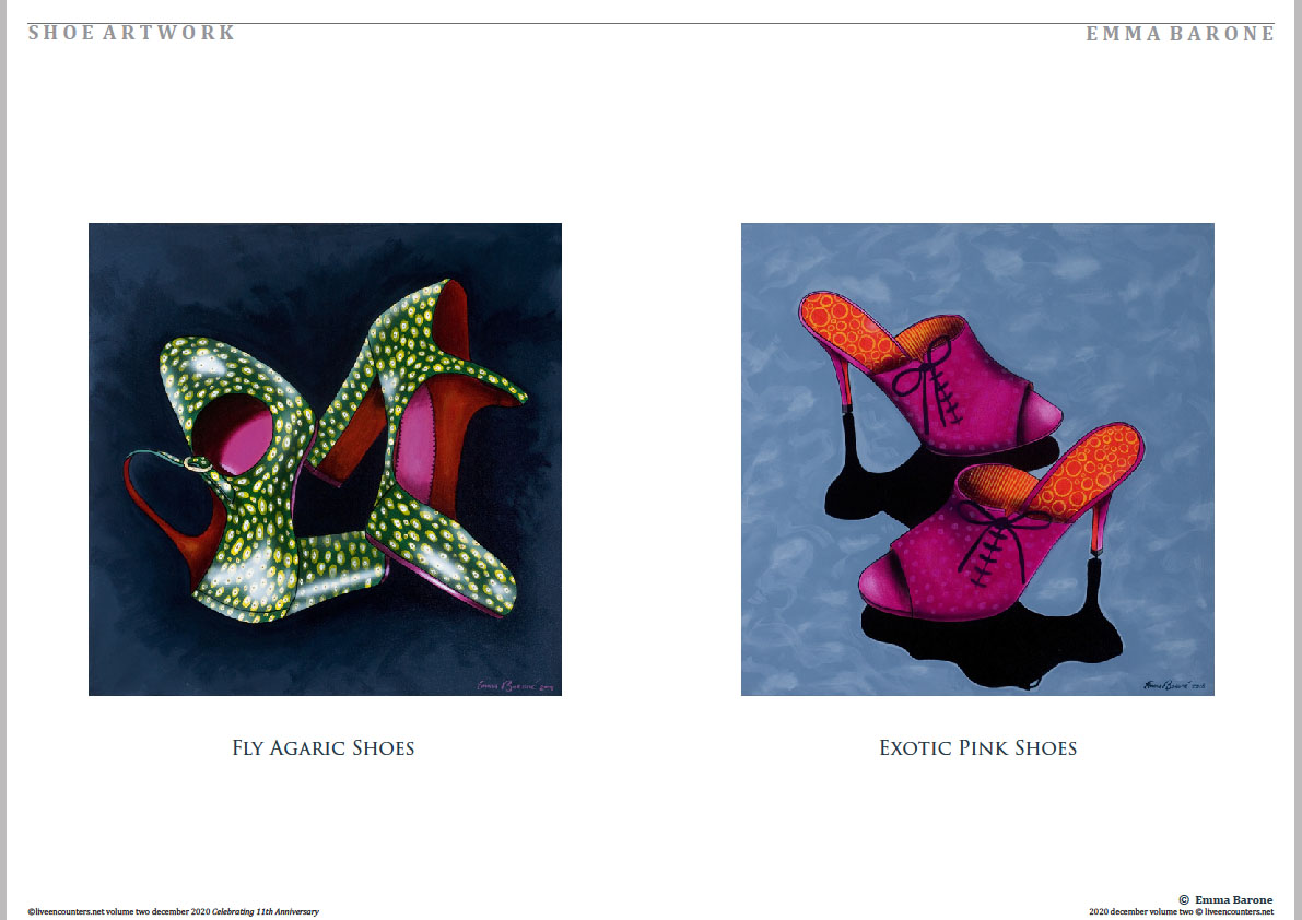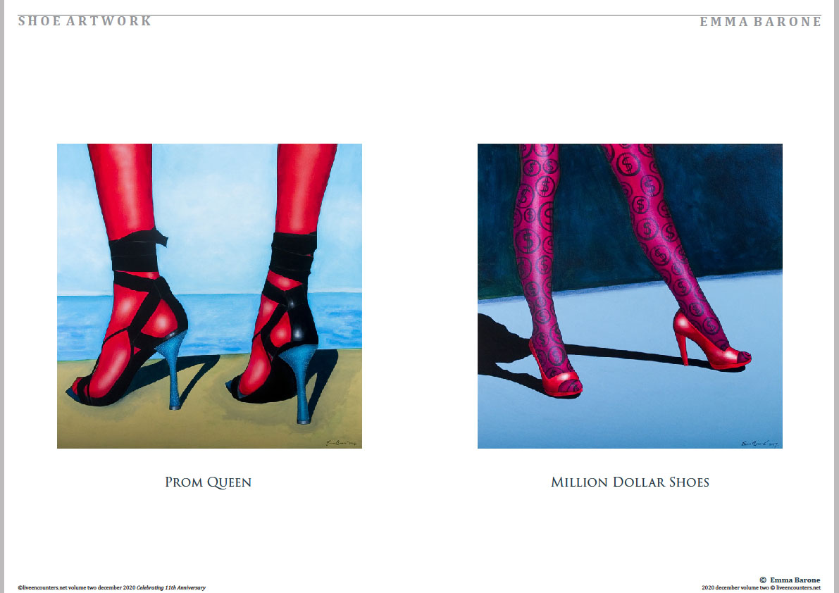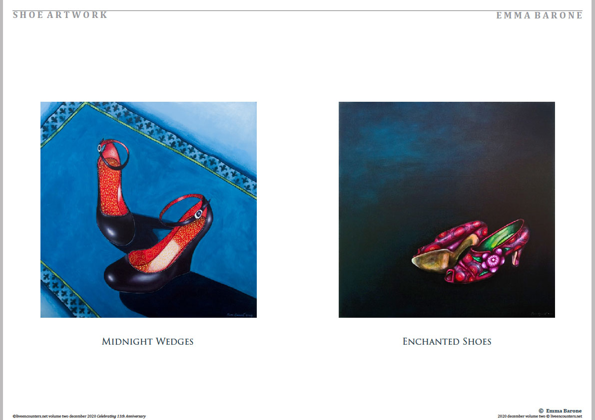 Emma Barone is a contemporary visual artist. She makes still life and landscape paintings in acrylic on canvas. She studied animation and has an eclectic design background that ranges from interior design to architectural ceramics, and from stained glass to jewellery design. Barone’s work has been featured in various publications including Live Encounters Magazine, The Irish Arts Review, Senior Times, House and Home, and the Sunday Independent; and she has published two books in collaboration with the Hennessy Award winning writer, Eileen Casey. Emma has exhibited extensively throughout Ireland, with 22 solo exhibitions under her belt, her work is in private and public collections including the Amsterdam World Trade Centre, Midlands Regional Hospital, Offaly County Council and Tullamore DEW Visitors Centre. https://www.emmabarone.com/