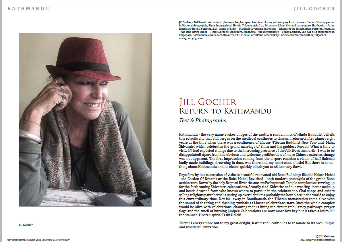 Jill Gocher, a Bali based international photographer, has spent her life exploring and enjoying Asian cultures. Her work has appeared in National Geographic, Time, International Herald Tribune, Asia Spa, Discovery, Silver Kris and many more. Her books – Asia’s legendary Hotels, Periplus, Bali- Island of Light – Marshall Cavendish, Indonesia – Islands of the Imagination. Periplus, Australia – the land down under – Times Editions, Singapore, Indonesia – the last paradise – Times Editions. She has held exhibitions in Singapore, Kathmandu, and Bali. Photojournalist + Media Consultant, AmazonPage: www.amazon.com/author/jillgocher instagram jillgocher