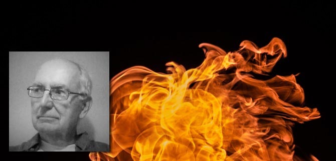 Then, thunder—yes, and when you shut off the clouds that day was the first I woke up to your tremendous power! But, huh, I, uh, whut? And Father Dwyer shot up from dozing senseless, asleep on his feet in the bright lit battleship-sized cooking show sound stage, embarrassed, yes very, yes more than even all the husbands who’ve ever fallen asleep to embarrass the many wives next to them, in many bright lit churches of all sizes, ‘round the world just before it’s time to get up to stand at the start of another seven thirty a.m. Sunday mass. Falling asleep even as God himself speaks; my God what a sin no no no–Dwyer jumped, writhed, stood like a rod, and pounded the tabletop, which also had been snoozing, and which had already sucked away and absorbed the burning bush, God and all, down into through the stainless steel all gone toward dark places, so here was the start again. This time it’s the real start again, oh God, thank God; I will get it right this time, guys! Yes, I will, so, yes, and he went on from there saying, All right, here you are, seamen! Episode one thousand, of The Sunday Dinner with Father Dwyer Cooking Show—an achievement we will celebrate, by allowing the Lord my God to come, yes, right here and speak to us wisdom, from this tiny burning bush! And his spreading flowing long-robed arms, again flamed it up, ready for the one thousandth new take of ninety-nine hundred previously completely flubbed attempts.