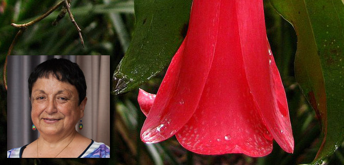 Since those times it is possible to find, down the slope of southern volcanos and hills, red copihues intertwined. Do not cut them, for if you do, you are killing Millaray and Maputen again. If you look at the light blue sky, you’ll see the haughty, majestic condor flying over the crater of volcanos. Do not kill her; it is Licanray’s soul wanting to kiss the red copihues. If you kill her, she’ll die for ever.