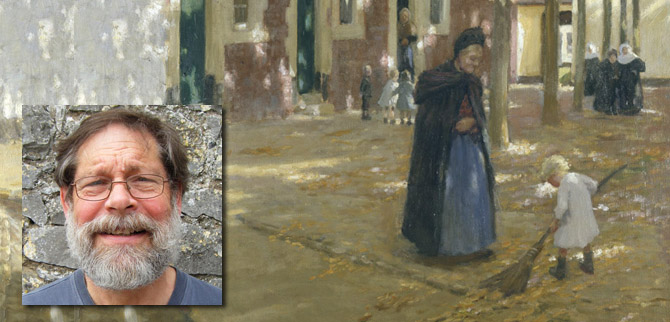 to the painting Sunshine in the Beguinage by Norman Garstin, 1908