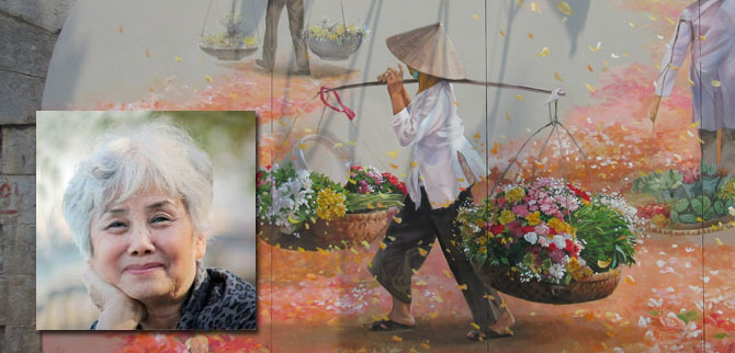 A former and much-loved high school literature teacher in Hanoi, poet Bui Kim Anh is a member of the Vietnam Writers’ Association. Born on February 25, 1948 in Thai Binh Province, Vietnam, she has spent most of her life in Vietnam’s capital, Hanoi. Bui Kim Anh writes many types of literature, and is constantly innovating her style and poetic expression. Her poetry is both sad and beautiful, conveying deep feelings about life’s joys and sorrows. Bui Kim Anh lives with his husband, well-known journalist Tran Mai Hanh, on Nguyen Dinh Chieu Street, Hanoi. She has two daughters and one son.