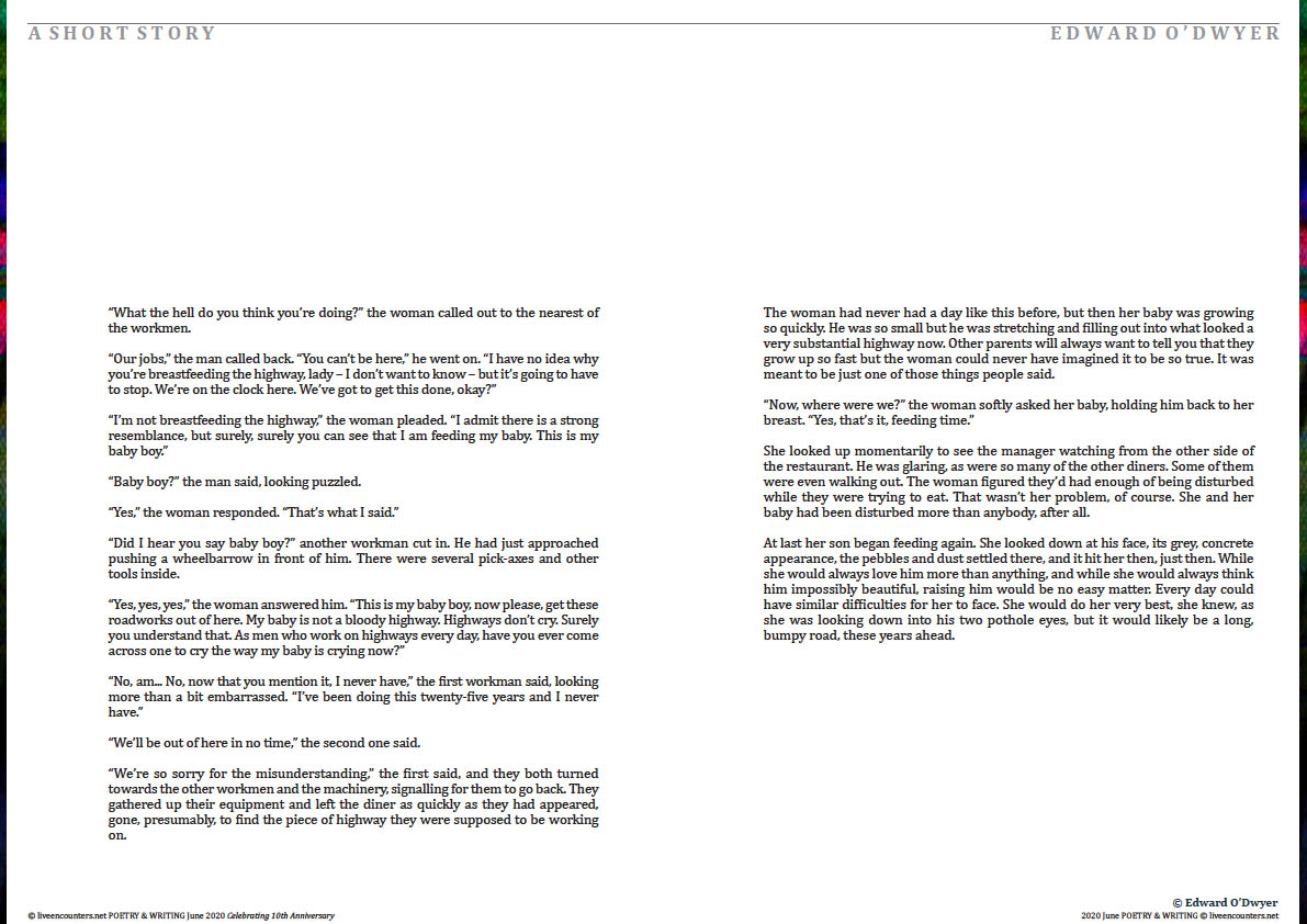 Edward O’Dwyer is a writer of poetry and fiction from Limerick, Ireland. His most recent book, Cheat Sheets (Truth Serum Press, 2018), is a collection of 108 dark comedy flash fictions, and featured on The Lonely Crowd journal’s ‘Best Books of 2018’ list. Donal Ryan calls them “wicked little gems”, while Tanya Farrelly compares them with “Woody Allen at his best.” His third collection of poems from Salmon Poetry, Exquisite Prisons, is due in 2020, following The Rain on Cruise’s Street (2014), which was Highly Commended by the Forward Prizes, and Bad News, Good News, Bad News (2017), which contains the poem ‘The Whole History of Dancing’, winner of the Eigse Michael Hartnett Festival 2018 Prize for Best Original Poem. His work is nominated regularly for Forward, Pushcart and Best of the Web prizes. He is on Twitter at @EdwardODwyer2.