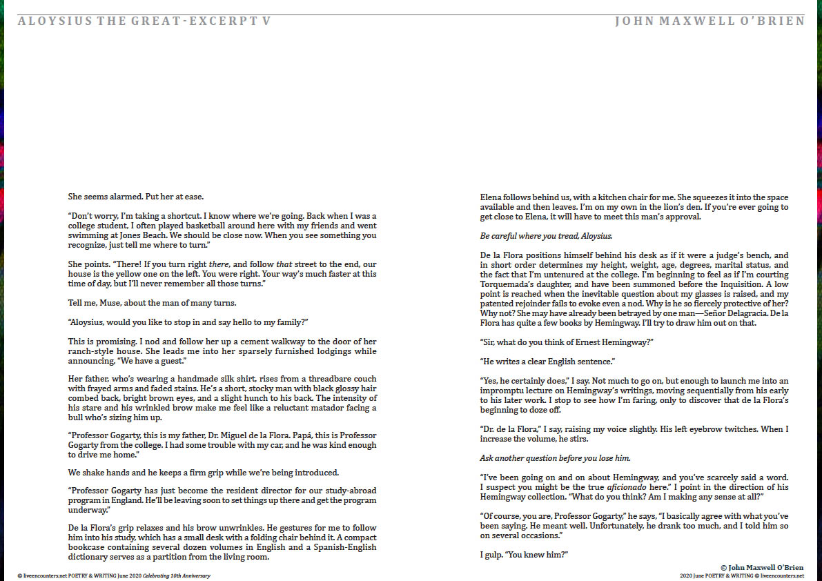 Aloysius the Great is a seriocomic tale of an alcoholic professor who becomes resident director of an American study abroad program in England during the 1960s and finds himself on a runaway roller coaster of rebellious students, drugs, sex, liquor, and academic politics. This picaresque novel is a treasure trove for admirers of James Joyce. Its chapters parallel episodes in Joyce’s Ulysses. Many of its characters come from Ulysses and/or individuals significant in Joyce’s life. Words and phrases from Ulysses are sprinkled harmoniously throughout the text and Joyce aficionados are invited to detect vestiges of the master in the excerpt that follows…